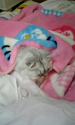 にゃんこが一緒に寝てくれるのでポカポカです。(^O^)