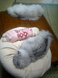 一緒に寝てますo(^-^)o可愛いです、ゴロゴロ言ってるー