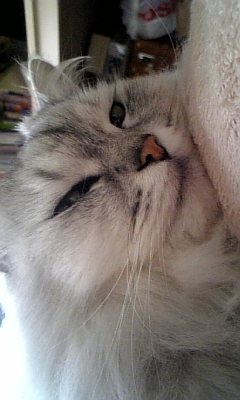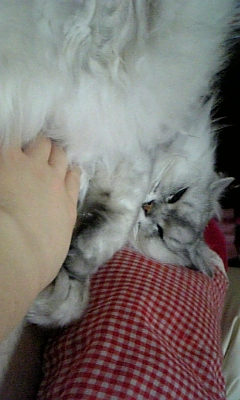 春とか秋の適温なときは、ミータくんが、顔の横で枕して寝てくれます。o(^-^)oふわふわのモコモコ~♪